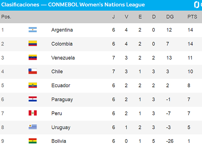 La fecha la cerraron con un empate sin goles las líderes Argentina y Colombia, quienes se mantienen lejos del resto en la clasificación.