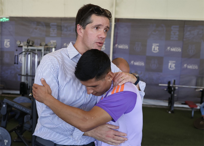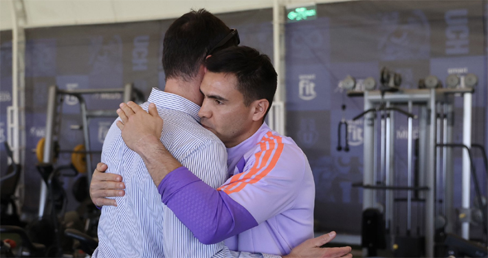 En ellas, se lo ve reunido con el plantel y staff, además de fotos abrazando al DT Fernando Gago y a futbolistas como Eduardo VargasIsrael Poblete, Christopher Toselli y el capitán Marcelo Díaz.