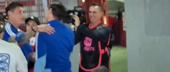 El "Cimbi" se fue raudo a camarines, pero antes de pasar por el túnel, varios hinchas se agolparon para insultarlo. Cuevas miró de manera desafiante, provocando aún más gritos de los forofos.