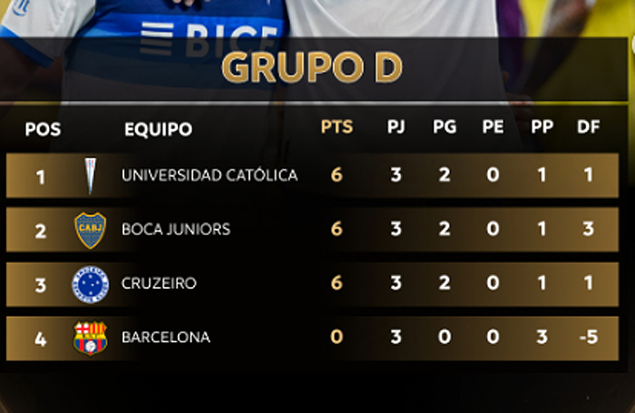 Por eso, la UC está primero. El siguiente parámetro, en tanto, para desempatar entre Boca y Cruzeiro es la diferencia de gol del grupo completo, y ahí el cuadro xeneize tiene +3 por sobre el +1 de los de Belo Horizonte.