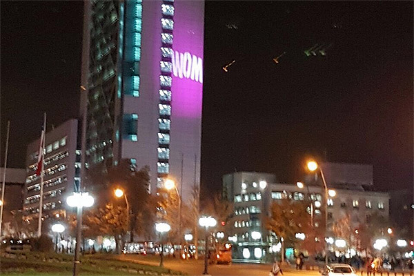 Esto luego que la firma proyectara, en un hecho inédito, su marca en el mismo edificio de Movistar (conocido como Telefónica), ubicado a un costado de la Plaza Italia.