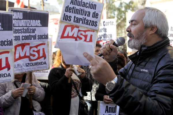 Movimiento Socialista de los Trabajadores se manifiestaron frente al Palacio de Tribunales en Buenos Aires en contra la subida de tarifas de los servicios públicos.