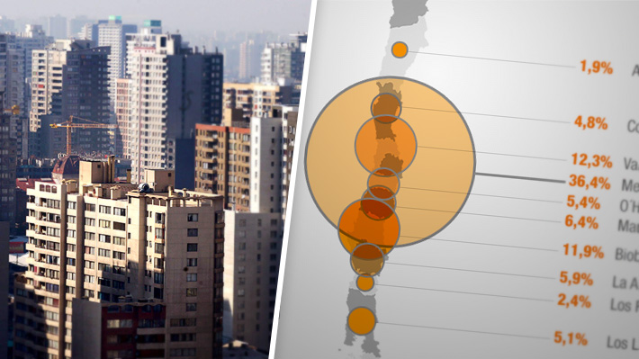 Las regiones que están hacia el centro del país presentan la misma tendencia, pero con valores bajo el 50%: Copiapó (45,8%) por el norte, y Puerto Montt (27,4%) y Valdivia (39%) por el sur.
