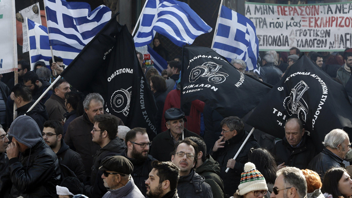 Agricultores griegos protestaron esta semana por los recortes de subvenciones y aumentos de impuestos impulsados por el Gobierno de Tsipras.