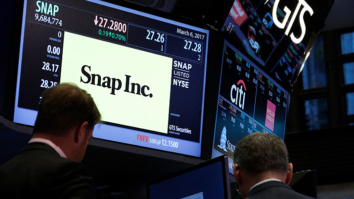 Las acciones de la empresa matriz de la red social Snapchat subieron un 44% en su primer día de negociación. El viernes, las acciones subieron 11%. Para el lunes, cinco de los siete analistas que cubren la compañía recomendaban vender las acciones, mientras que dos recomendaban mantenerlas. Ayer lunes cerraron con una caída de 12,26%.
