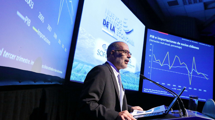 "La correlación entre exportación y PIB es enorme. Del '84 al 2007 tuvimos un aumento fenomenal de exportación. Algo pasó desde el 2007 que a Chile se le olvidó exportar. Sin crecimiento exportador no nos va a ir bien", sostuvo el ministro.