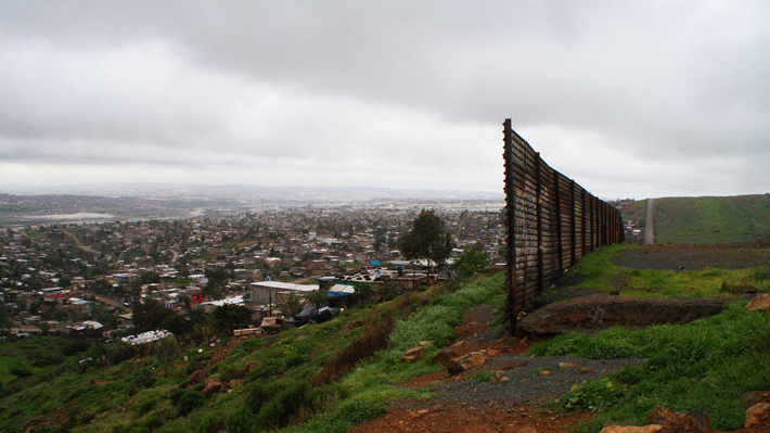 Muro de lata que separa al territorio mexicano con Estados Unidos, en el estado de Baja California.