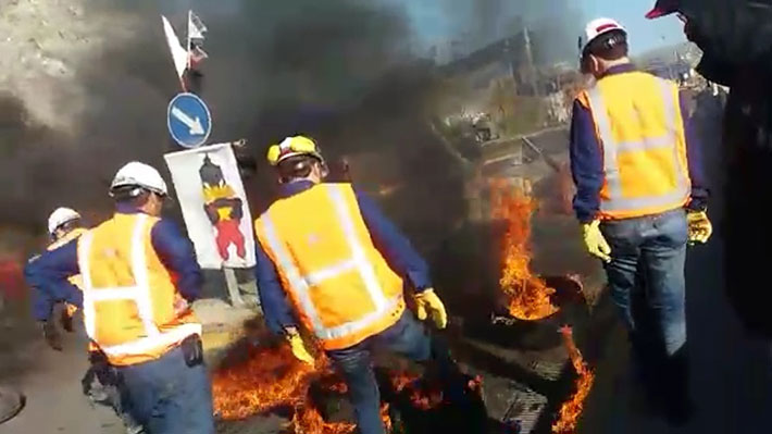 Un video de trabajadores captó el momento en que ejecutivos de la minera intentaron ingresar al puerto Coloso, pero los huelguistas optaron por incendiar neumáticos y formar una barricada. El sindicato acusó "provocación" por parte de los representantes de la compañía, quienes llegaron solicitando que se cumpliera la ley.