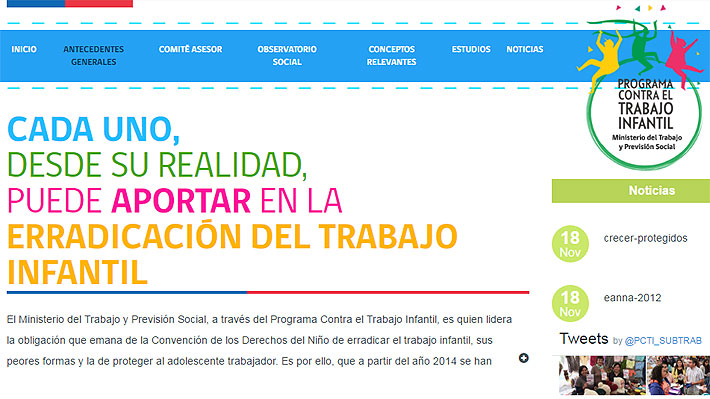 La página www.noaltrabajoinfantil.cl cuenta con noticias, información, estudios y antecedentes generales de la problemática, lo que fue destacado por la autoridad.