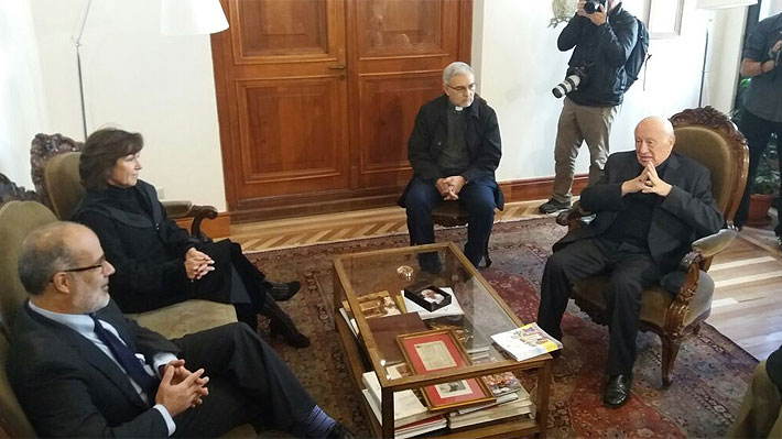 SANTIAGO.- Los ministros de Hacienda y de Trabajo, Rodeigo Valdés y Alejandra Krauss, respectivamente, se reunieron esta mañana con el arzobispo de Santiago, monseñor Ricardo Ezzatti, para recibir el documento con cinco propuestas sobre la reforma al sistema de pensiones.