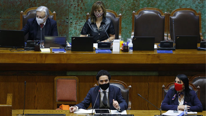 Los ministros de Hacienda, Ignacio Briones y de Desarrollo Social, Karla Rubilar, siguieron el debate en la Sala.