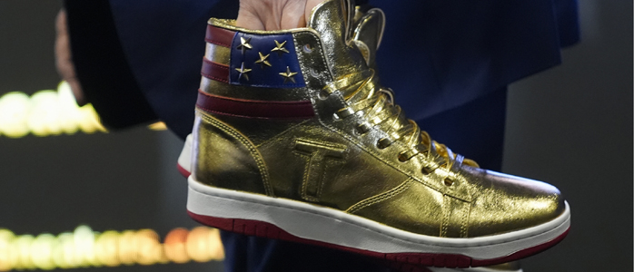 Doradas, con detalles de la bandera estadounidense y una "T" en los costados, son las características de las zapatillas lanzadas por ex presidente de Estados Unidos, Donald Trump.
