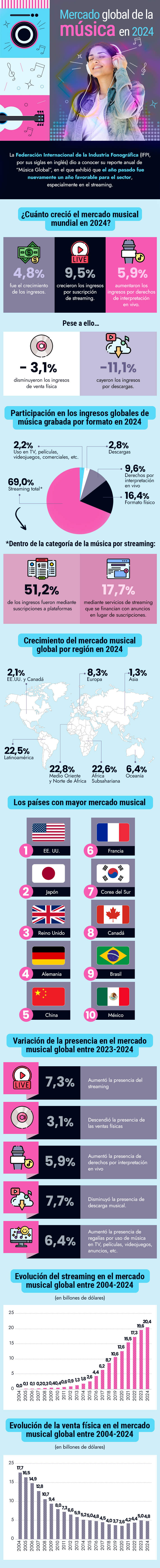 Mercado musical crece empujado por el streaming: Dos tercios de los ingresos globales se generan por esa vía