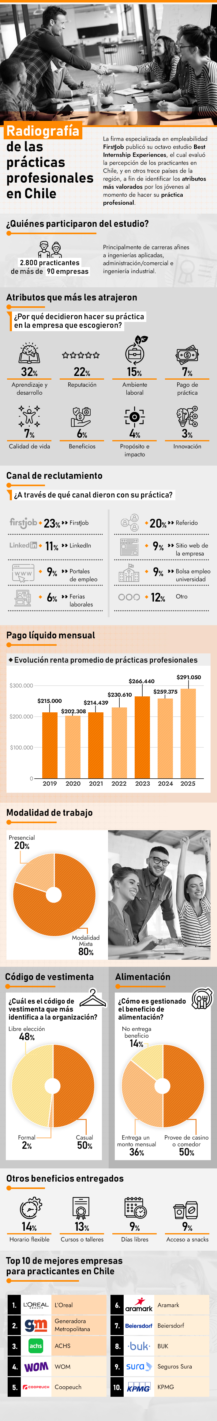 Radiografía a las prácticas profesionales en Chile: Cuál es la renta promedio y los atributos que más atraen a los jóvenes