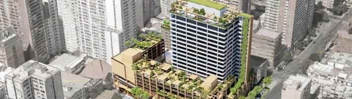 Otro caso es el proyecto Santa Rosa, liderado por inmobiliaria Territoria. Se trata de una iniciativa de renovación urbana que busca transformar el antiguo edificio de Enel en Santiago en un espacio mixto que combine un mercado urbano tipo MUT —como el de Tobalaba— con un edificio residencial.