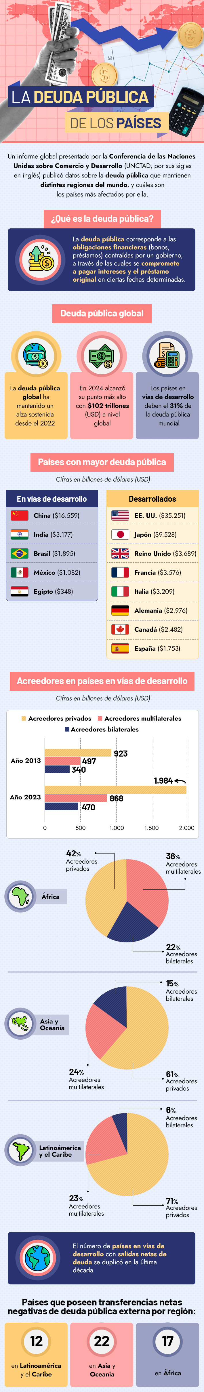 Infografía: Johanna Mellado, Emol | Contenido: Vladimir Núñez, Emol | Fuente: “Un mundo de deuda: Informe 2025” de la Conferencia de las Naciones Unidas sobre Comercio y Desarrollo (UNCTAD)
