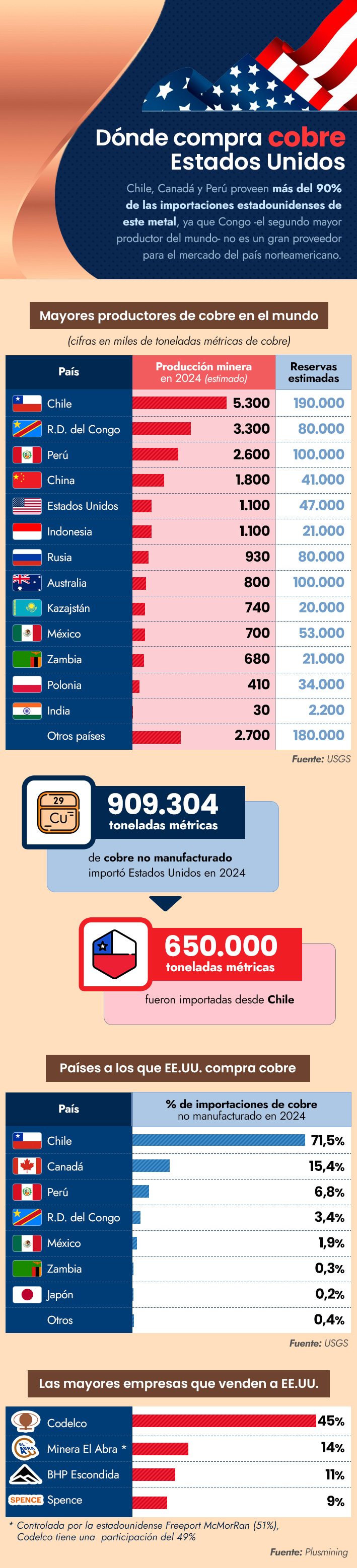 Suministro depende de Chile: La lista de países (y empresas) que abastecen de cobre a EE.UU.