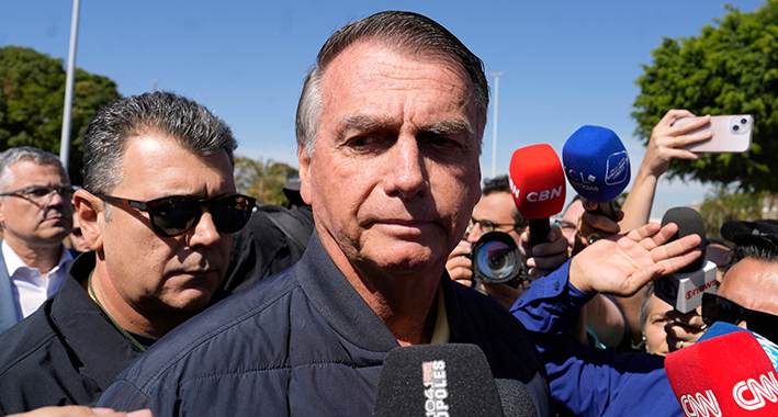 El expresidente de Brasil, Jair Bolsonaro, habla con la prensa tras juicio en la Corte Suprema. | AP