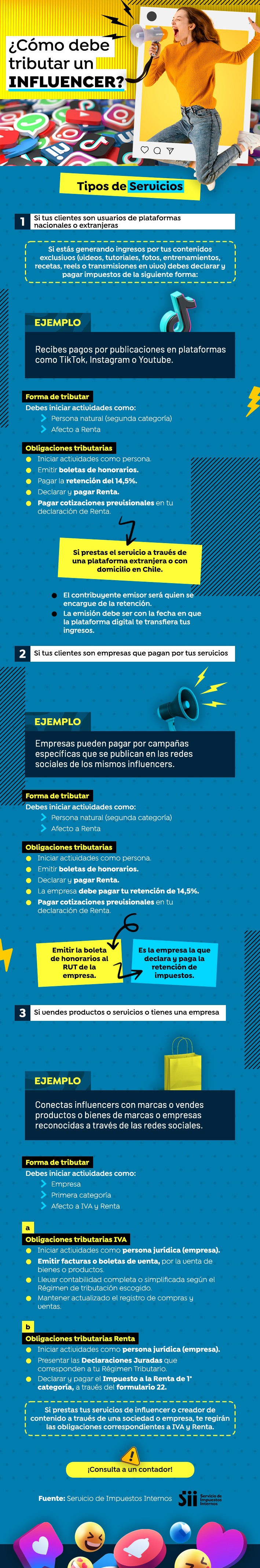 ¿Eres influencer? Conoce cómo deben realizar el proceso tributario de sus contenidos en esta infografía
