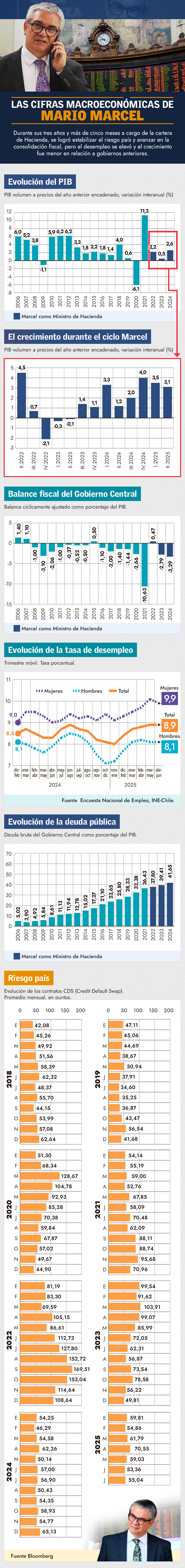 Las cifras macroeconómicas de Mario Marcel: Cómo fueron sus años como titular de Hacienda en gráficos