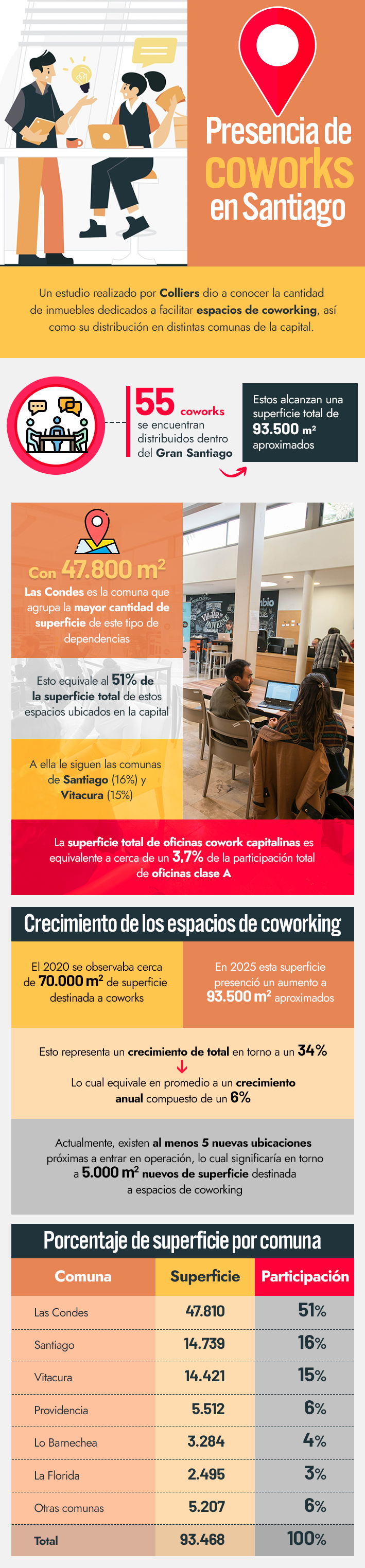 Según Colliers, 55 de este tipo de oficinas se encuentran distribuidas dentro del Gran Santiago.