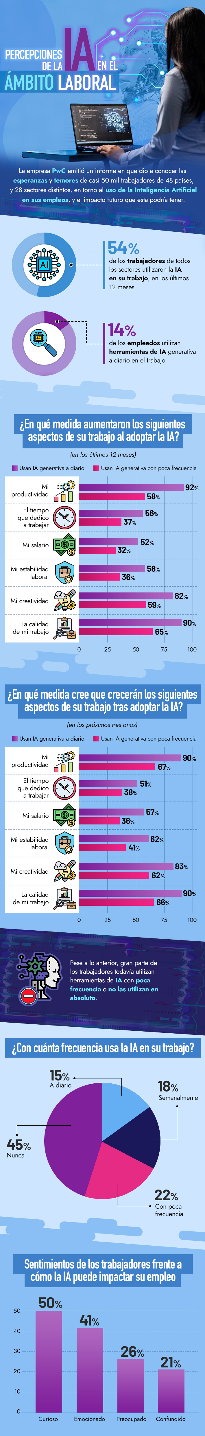 A través del informe publicado por PwC también se dio a conocer que más de la mitad de los empleados de todos los sectores utilizaron Inteligencia Artificial en los últimos 12 meses.