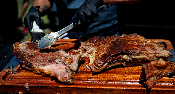En el encuentro "Locos por el asado", que reunió a miles de personas recientemente en un hipódromo al norte de Buenos Aires, Graciela Ramos recordó la tradición argentina de la carne a las brasas en "esas mesas largas, con mucha familia" alrededor.