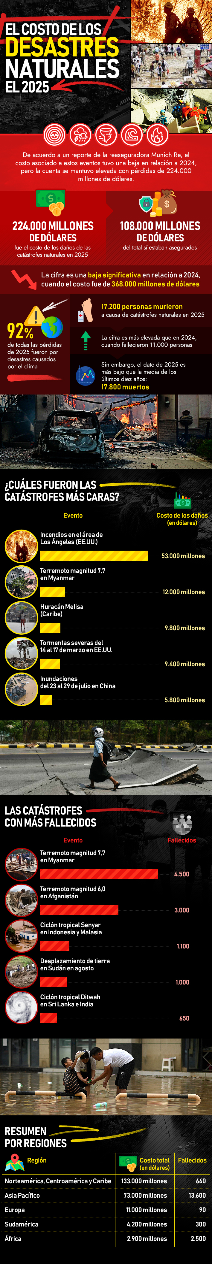 Las grandes catástrofes naturales causaron daños por unos 224.000 millones de dólares en 2025