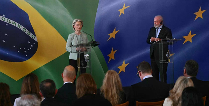 Ursula von der Leyen, líder de la UE, junto al presidente brasileño Lula da Silva. | AFP