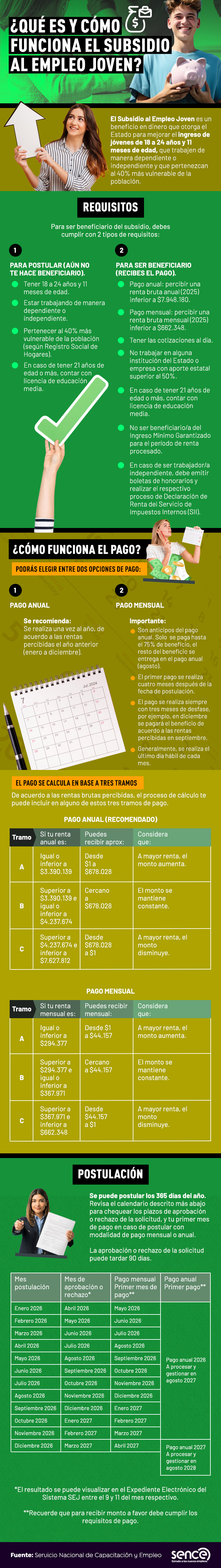 El beneficio está dirigido a jóvenes que se desempeñan de manera dependiente o independiente y que pertenecen al 40% más vulnerable de la población, con el objetivo de apoyar su inserción y permanencia en el mercado laboral.