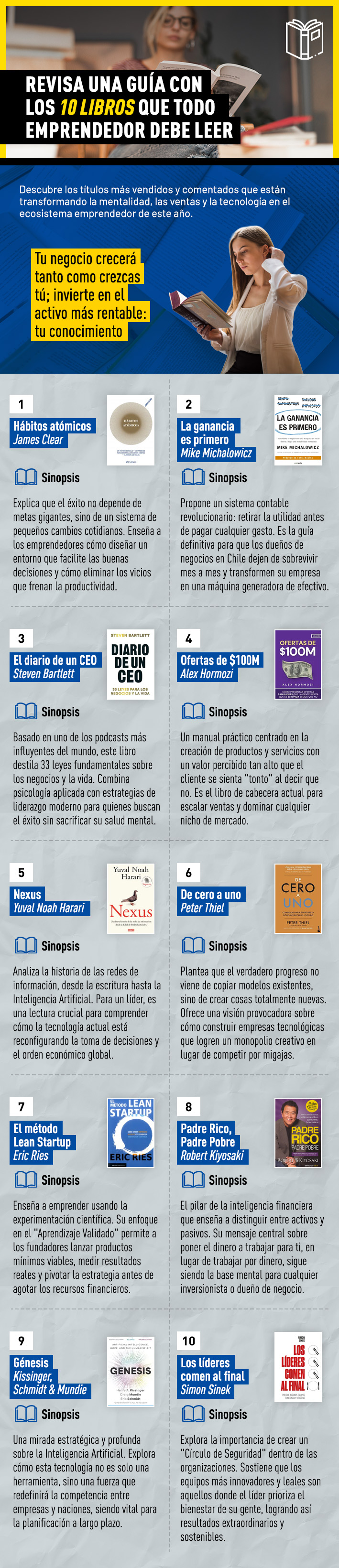 Biblioteca del emprendedor: Revisa una lista con 10 libros que no pueden faltar para el mundo de los negocios
