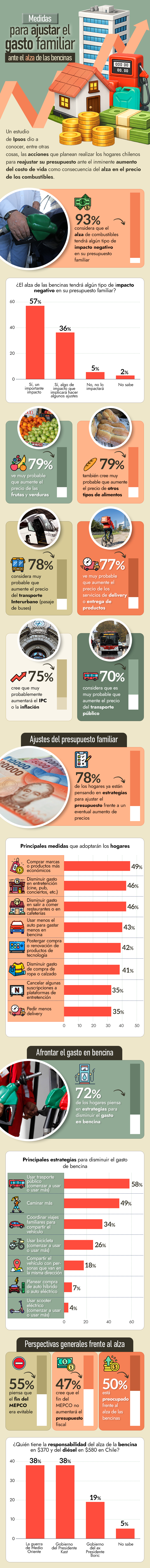 Alza de bencinas: 78% de los hogares chilenos piensan estrategias para ajustar el presupuesto familiar