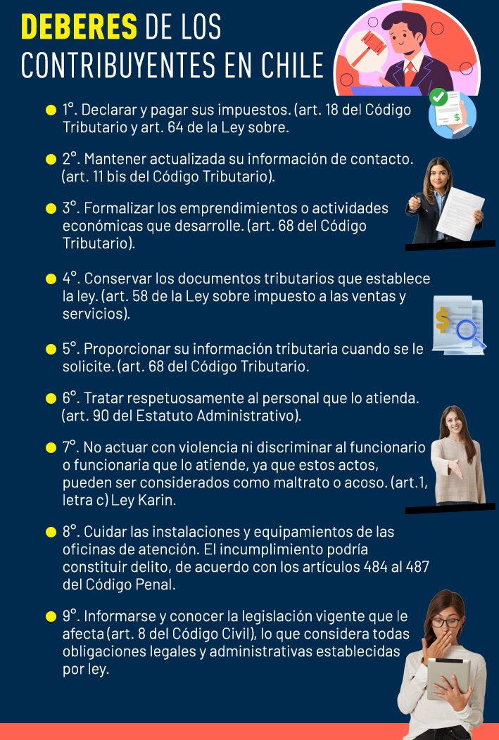 Derechos y deberes tributarios: Revisa una infografía con todo lo que el contribuyente debe conocer