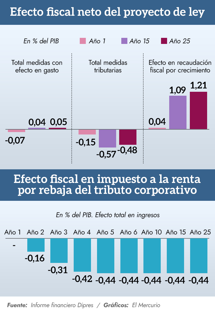 En este último, el organismo proyecta que recién después de diez años en vigencia del proyecto (si es que es aprobado bajo los lineamientos del Ejecutivo) se lograría un efecto fiscal positivo.