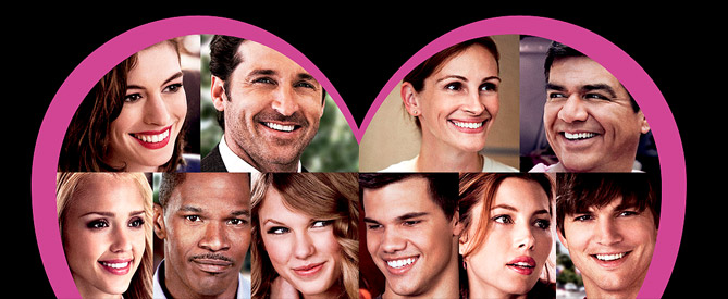 Director:Garry MarshallElenco:Jessica Alba, Kathy Bates, Jessica Biel, Jamie Foxx, Jennifer Garner, Topher Grace, Anne Hathaway, Ashton Kutcher, Shirley MacLaine, Julia Roberts, Taylor SwiftGénero:comedia, romancePaís:Estados UnidosIdioma:inglésDuración:0Censura:Mayores de 14 años
