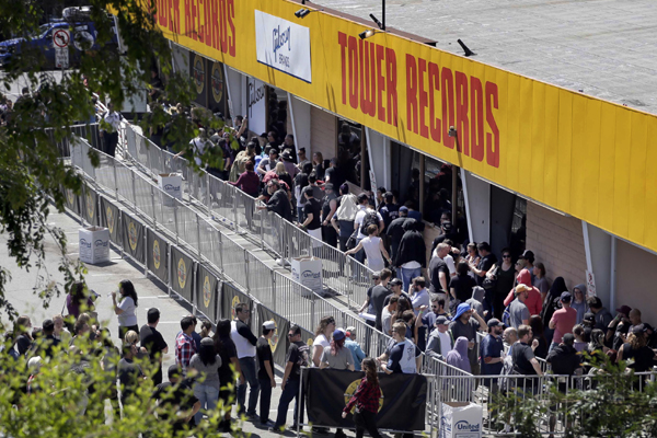Unos 250 fans vestidos de blanco y negro esperaron el jueves frente a la antigua tienda de discos Tower Records para comprar entradas para el show, que al principio no había sido anunciado de forma oficial.