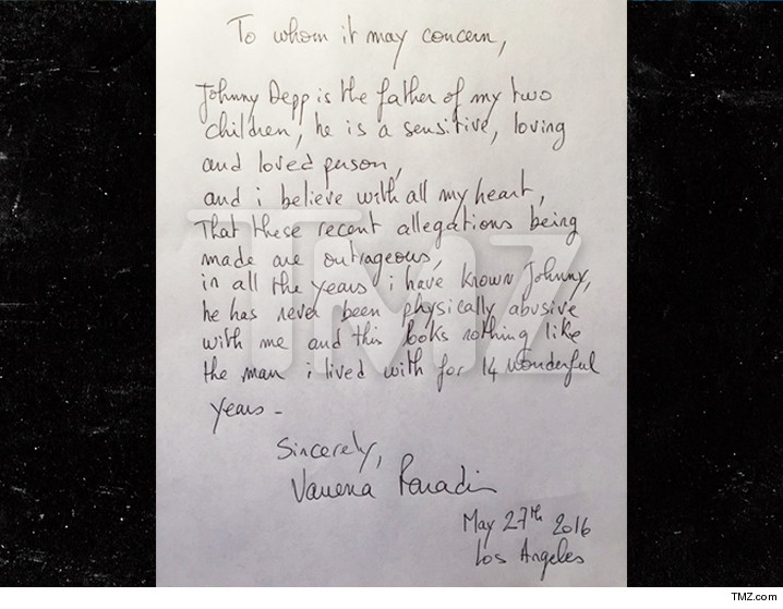 A través de una carta publicada en el sitio de espectáculos TMZ, Paradis, quien estuvo con Depp durante más de una década, tildó de "indignante" la demanda contra el protagonista de la cinta "Piratas del Caribe", a quien definió como una persona "sensible y cariñosa".