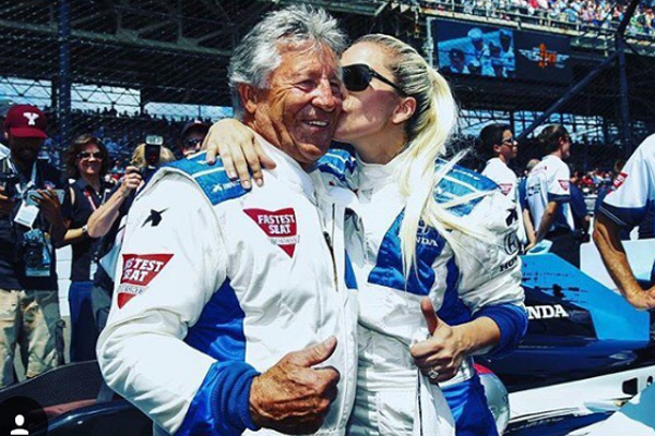 La neoyorkina de 30 años acompañó al italiano Mario Andretti en el importante evento que se llevó a cabo el domingo.