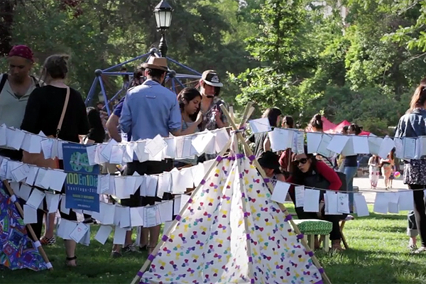 "Tus ideas en acción", ese es el sentido de la cuarta versión de "100 en 1 día Santiago", el festival de intervenciones urbanas que pone en el centro de atención a los ciudadanos. Y es que aquí, son las personas, grupos y organizaciones las que idean un proyecto y lo ponen manos a la obra.