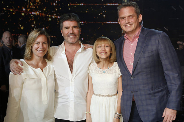 Simon Cowell y Grace VanderWaal junto a ejecutivos de NBC.