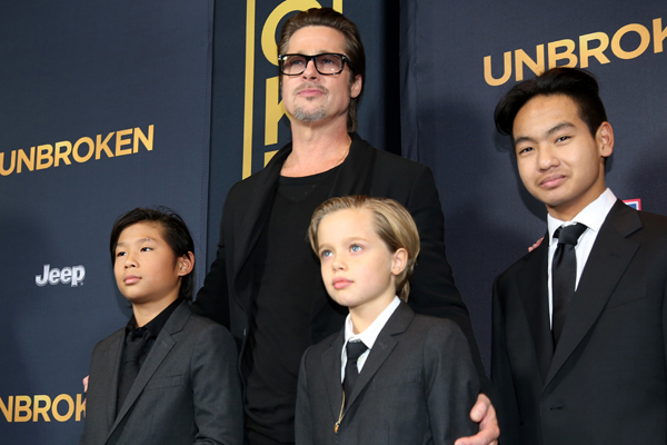 Brad Pitt junto a tres de sus hijos en el estreno de "Inquebrantable" en 2014.