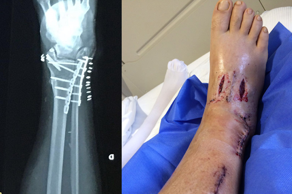 "En los primeros días iba gente a verme y me costaba reconocerlos, yo no entendía bien lo que había pasado y a la semana le pregunté al doctor si había sido tan grave. Ahí me contaron y lo dimensioné...A los diez días me sacaron los puntos y los corchetes, que no es normal. A la semana de operado yo ya estaba caminando. Pero el doctor me dijo que eso no lo podía hacer porque la fractura no estaba consolidada", dice.
