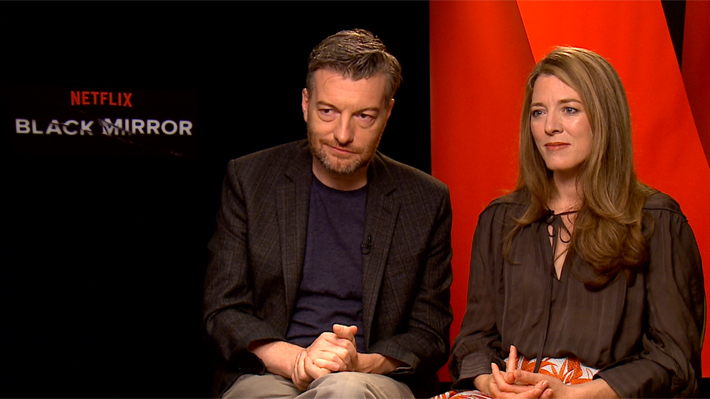 Charlie Brooker: Tenemos thrillers... básicamente, esta temporada tenemos una ambición mayor. Así que lo hicimos en un lienzo un poco más grande, hay más variedad y locaciones. Como decía Annabel, tenemos locaciones en Escandinavia, Estados Unidos, Gran Bretaña. Así que es más "Black Mirror", es como le hubiésemos subido un poco la intensidad al color y al contraste (hace el gesto de mover perillas a un televisor).
