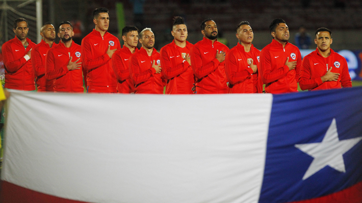 El equipo de la selección chilena antes del partido válido por las clasificatorias al mundial de Rusia 2018 contra Perú