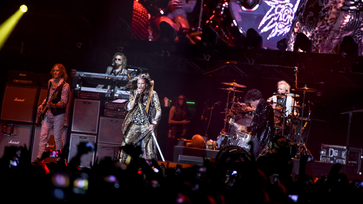 Aerosmith durante sumás reciente concierto en Chile.
