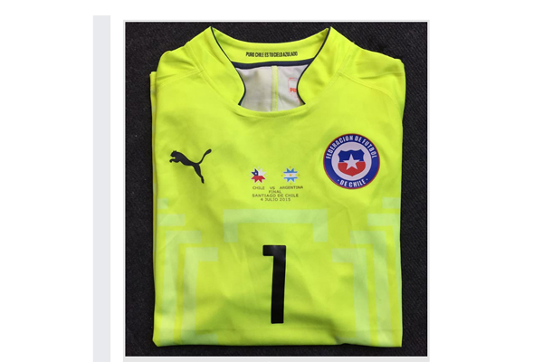 La polera que el capitán de la Selección Chilena utilizó en esta histórica final es uno de los objetos más cotizados de este remate. La camiseta partió en los $300.000 y actualmente va en una cifra superior al millón de pesos.