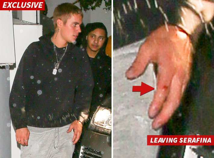 Tras el hecho, el canadiense se retiró del lugar y fue fotografiado cuando salía del restaurante. En la imagen se aprecia un pequeño rasguño en una de sus manos.