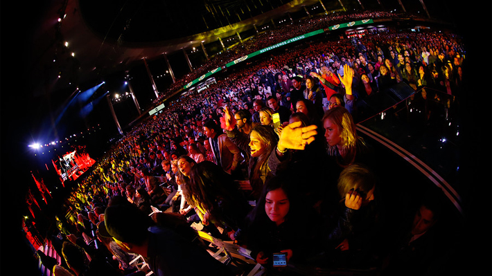 En una noche dedicada a la música romántica, gran parte de la Quinta Vergara estaba llena de mujeres y más que alguna pareja. Este cambio de proporción en cuanto a los representantes de cada género trajo una consecuencia poco importante, pero notoria: la aparición en cantidades industriales de coronas de flores en sus cabezas.