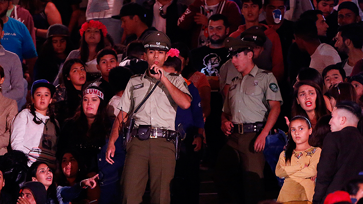 Carabineros estableciendo el orden en la galería durante el show de Villegas.