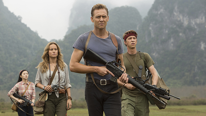 La película, ambientada en 1973, después de que EE.UU. sacara sus tropas de Vietnam; sigue al científico Bill Randa (John Goodman) cuando consigue el pase para visitar una misteriosa isla en el Pacífico. Para ello, debe ser escoltado por un grupo de militares, liderados por el Coronel Preston Packard (Samuel L. Jackson). Su compleja llegada se complica con la aparición de King Kong, un gigante gorila, encargado de proteger el lugar. Larson y Hiddleston interpretan a dos integrantes del equipo que luchan a favor del animal.